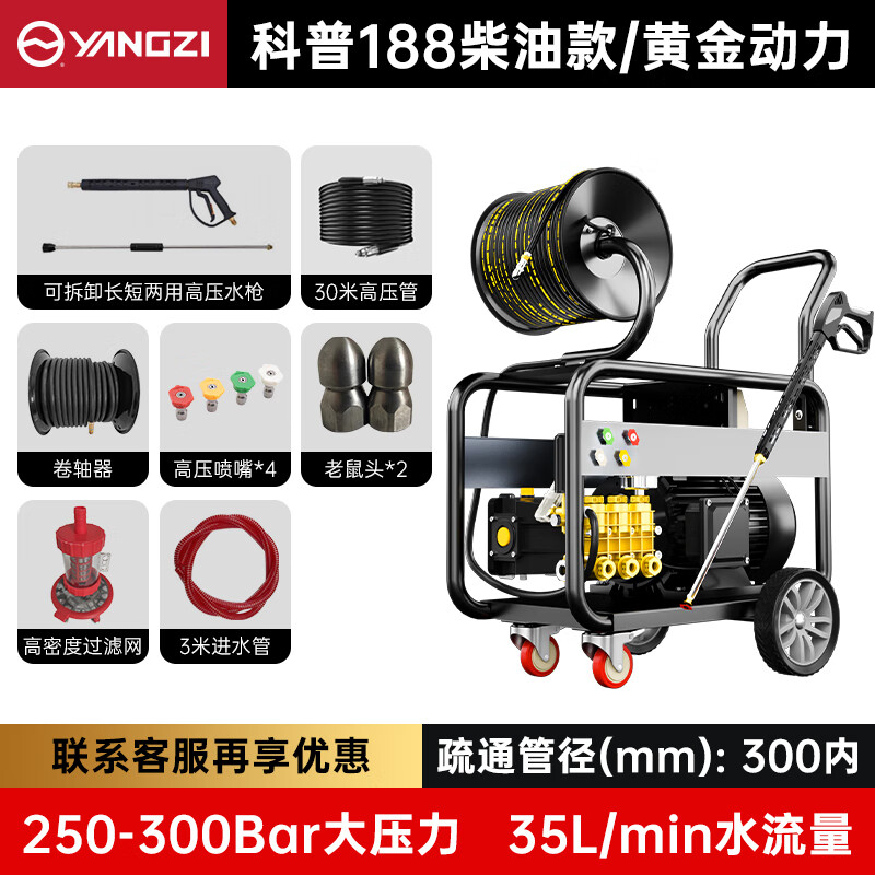 揚子管道疏通機C系列水老鼠下水道神器大功率柴油款物業(yè)小區(qū)市政清洗機