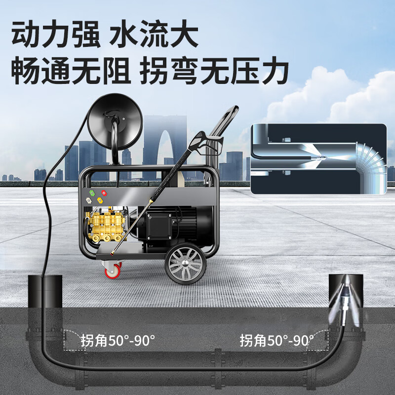 自吸/水龍頭清洗更方便,30-100米定制防爆鋼絲管,專門針對各種口徑大小得管道,可疏通50-800mm管徑