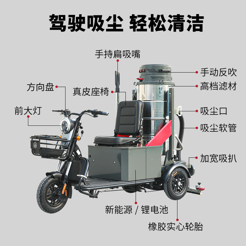 揚(yáng)子YZ-ZL100F駕駛式吸塵車(chē),雙桶電動(dòng)吸塵靈活方便,2200W大功率輕松吸納灰塵、鐵屑、砂石、碎渣紙屑等垃圾